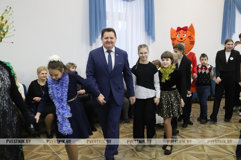 Пришли поздравить ребят с праздниками Наталья Кочанова, председатель Совета Республики Национального собрания Республики Беларусь. И Игорь Маркович, председатель Полоцкого райисполкома.