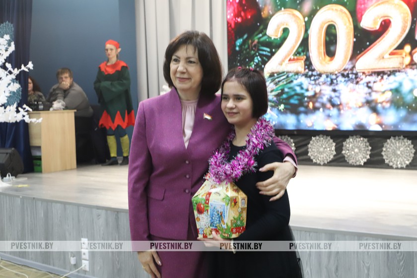 — Я искренне рада быть в своем родном городе Полоцке, где я родилась и выросла. Искренне рада поздравить вас всех с наступающим Новым годом! Такая добрая традиция появилась очень давно в Беларуси, когда Президент сказал: надо проводить акцию «Наши дети» и все детки должны быть в этот праздник радостными, веселыми. Мы любим вас, потому что вы наше будущее, наши белорусы. Мы вами гордимся, вы замечательные, хорошие, талантливые. Конечно, поздравляю всех взрослых. Искренне хочу вас поблагодарить за то, что вы делаете, за ваши добрые сердца, отношение к нашим деткам, преданность и любовь к нашей стране, — сказала Наталья Кочанова.