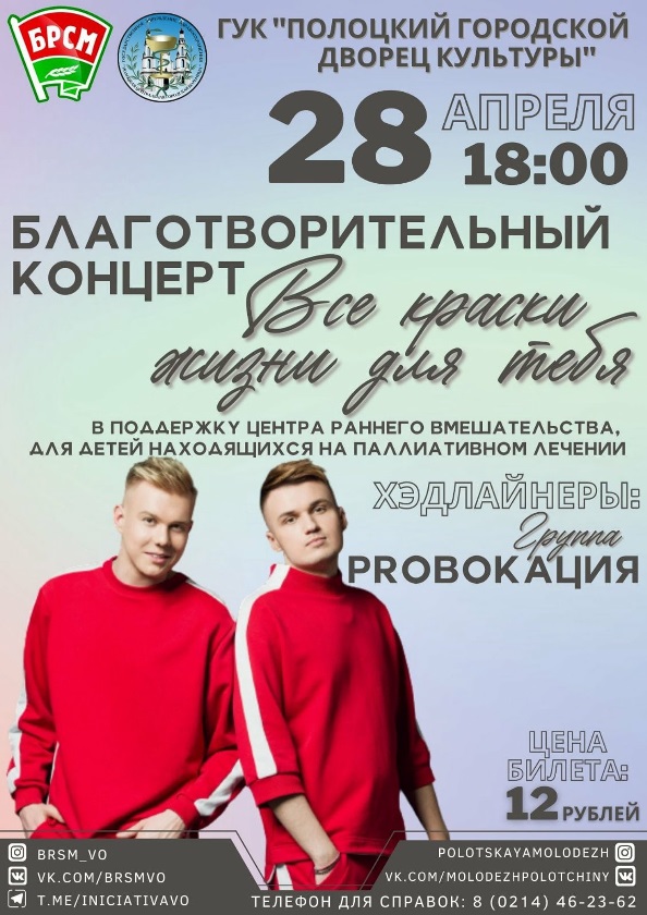 28 апреля в 18.00 в Полоцком городском Дворце культуры состоится финал благотворительного марафона витебской области в поддержку центра раннего вмешательства для детей, находящихся на паллиативном лечении.