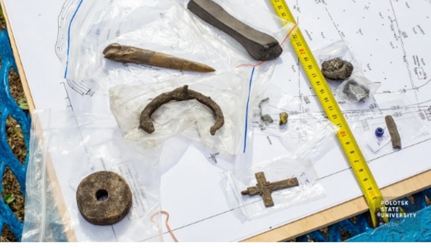 Некоторыми подробностями археологического исследования поделился сам руководитель. Алексей Леонидович Коц, старший преподаватель кафедры истории и туризма Полоцкого государственного университета имени Евфросинии Полоцкой: «Археологические раскопки на территории так называемого Нижнего замка организованы в рамках изучения памятника в преддверии строительных работ при реконструкции и замене покрытия стадиона Спартак. Площадка стадиона ранее не изучалась. Раскопки проводились только на смежных территориях, поэтому археологи столкнулись с задачей определения сохранности культурного слоя и определения хронологических этапов его формирования. Сейчас начат предварительный этап работы, который заключается в закладке ряда шурфов по всей площадке стадиона. Уже вскрыто 7 площадок и предварительные итоги не могут не радовать. Определено наличие тут культурных слоев как древнерусского периода, так и 16-18 вв. Удивляет наличие «мокрого» культурного слоя, в котором достаточно хорошо сохраняется древесина. Присутствие мощного слоя навоза 11 в. позволило выявить лесные орехи, семена проса, мака и конопли.Другие находки представлены рядом бус 10-12 вв., шиферными пряслицами, гирькой разновесом, обувными подковками, костяной проколкой, грузилом ткацкого станка, заготовкой для шахматной фигуры, нательным крестом 18 в., пулями 1812 г. и другими. Не могут не радовать и многочисленные фрагменты ювелирных тиглей, которые адресуют нас к присутствию на данной территории ювелирного производства.Дальнейшее участие в раскопках студентов Полоцкого университета позволит более плодотворно и масштабно провести работы по изучению значимого памятника древнего Полоцка».