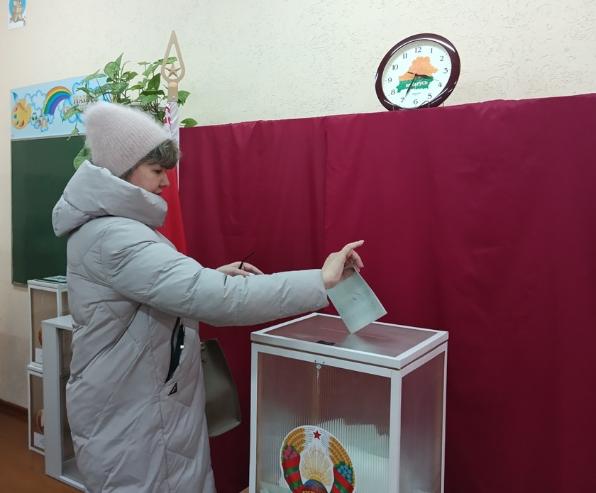 На участке для голосования №22,что разместился в БШ №3, только за первые два дня свой выбор сделали более 300 избирателей. Зинаида Петровна Мининкова отдала свой голос за свободную и процветающую Беларусь.
