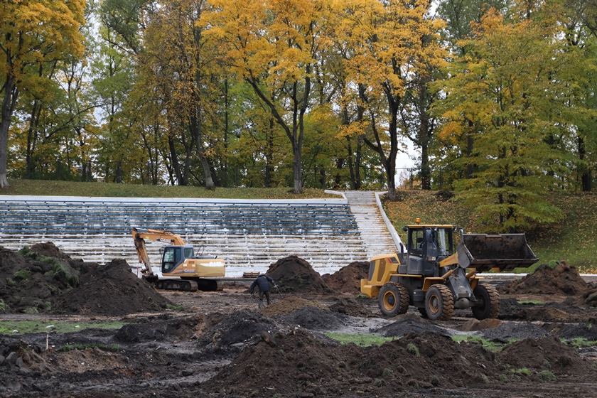 С помощью спецтехники раскопанные шурфы засыпаются землей. Снята верхняя часть грунта, готовится основание под укладку искусственного покрытия. Все работы по реализации проекта проходят с обязательным археологическим надзором.