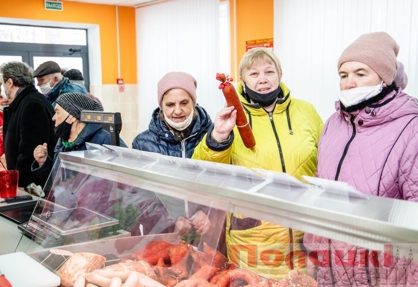 В день открытия магазина первому покупателю — а им стала Валентина Блинова — был вручен подарок, батончик свежей вкусной колбаски.