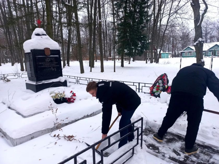 Кроме этого, парни и девушки расчищают от снега памятные места Полотчины.