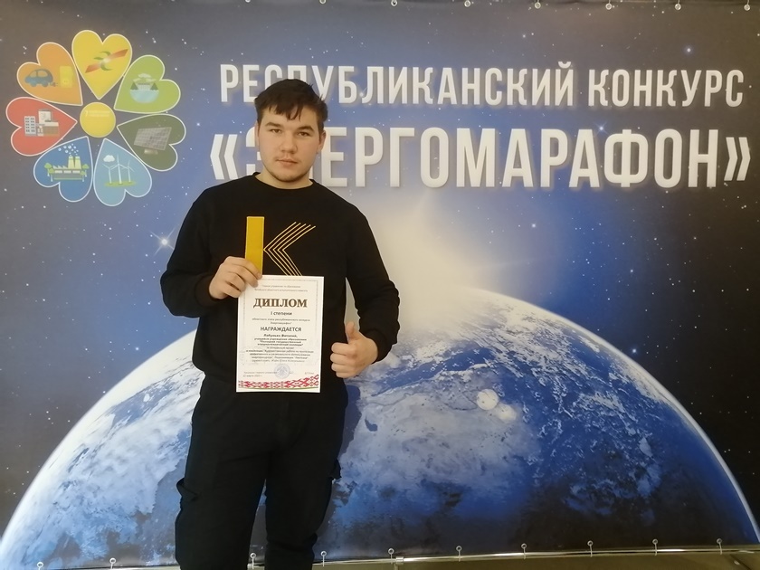 Среди победителей областного этапа — листовка «Пора бы уже знать, как по-современному энергоресурсы сберегать!» удостоена диплома I степени (автор листовки — Виталий Лабунько (на фото), учащийся гр.24, руководитель проекта — Е.Н.Жидко, методист). Автору вручен денежный сертификат, и на счет учебного заведения перечислены средства на реализацию мероприятий по энергосбережению.