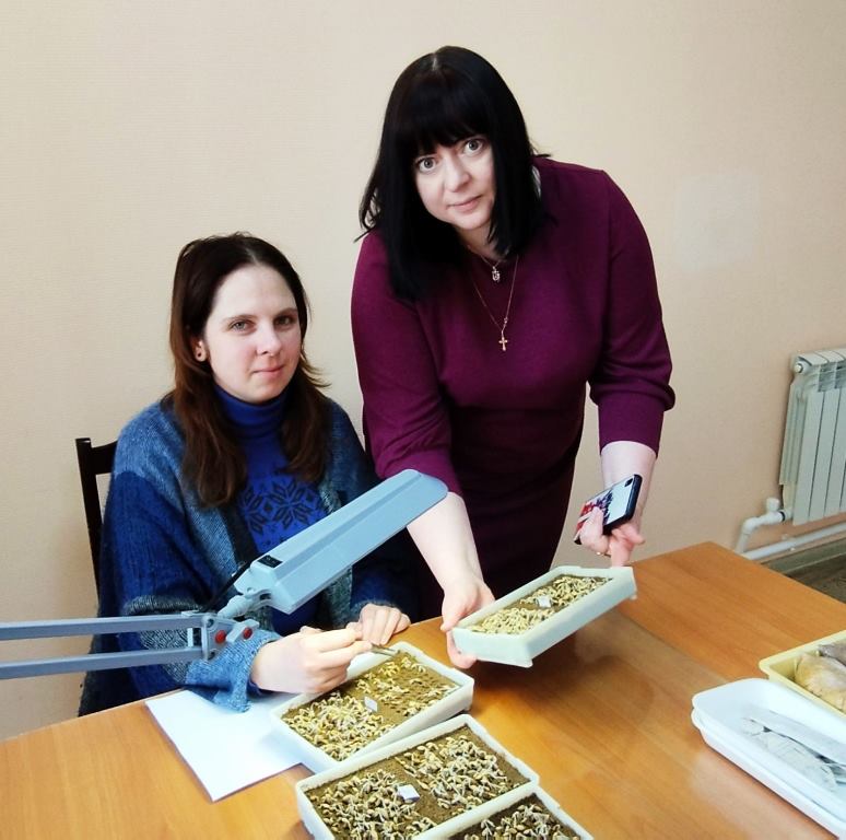 –Будущий урожай сельскохозяйственных культур закладывается в нашей лаборатории, где в эти дни проводится анализ посевных качеств семян растений, которые уже через полтора-два месяца будут высевать на поля сельхозпредприятий,  — рассказала начальник Полоцкой районной государственной инспекции по семеноводству, карантину и защите растений Татьяна Филонова (на фото справа вместе с Еленой Толкачёвой, ведущим агрономом–государственным инспектором по семеноводству).