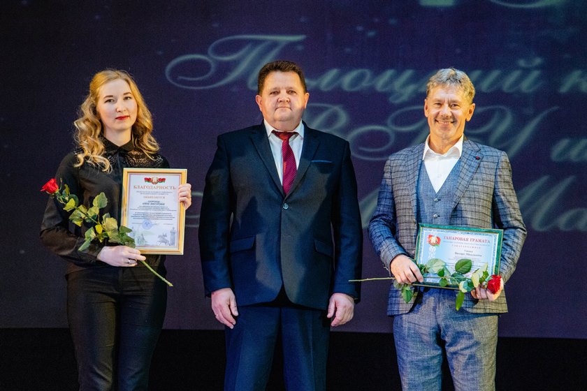 Руководитель района вручил Почетную грамоту Полоцкого районного исполнительного комитета Виктору Ушаку, преподавателю основного музыкального образования, председателю комиссии баяна и аккордеона и обяъвил Благодарность председателя Полоцкого райисполкома Алёне Скороход, преподавателю основного музыкального инструмента (баян, аккордеон).