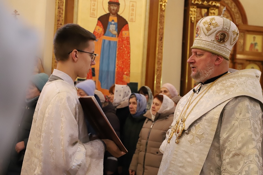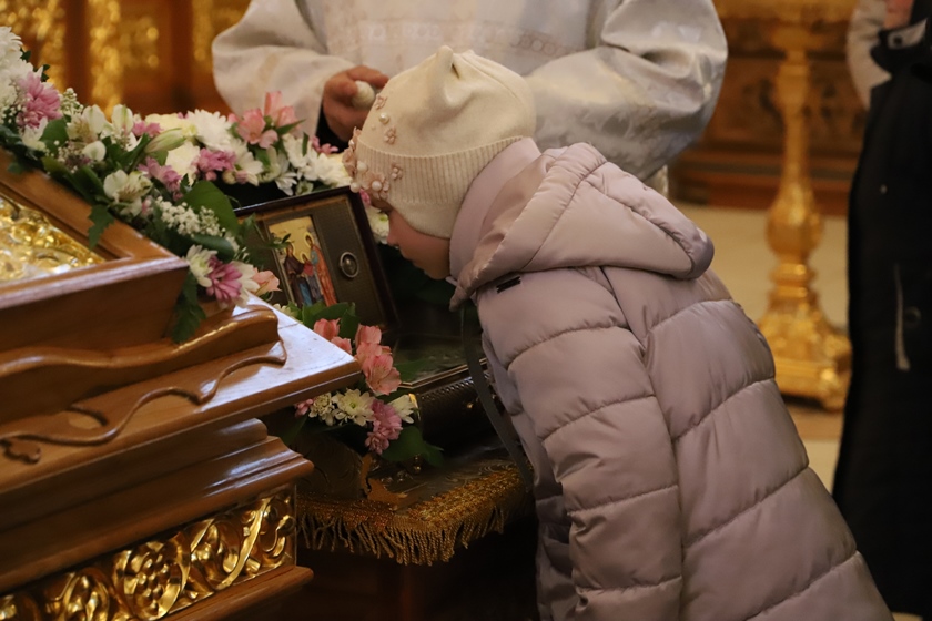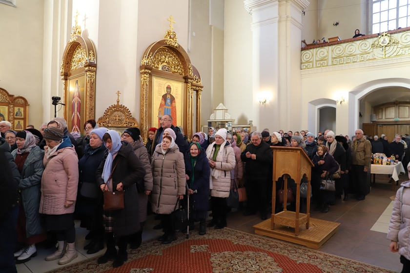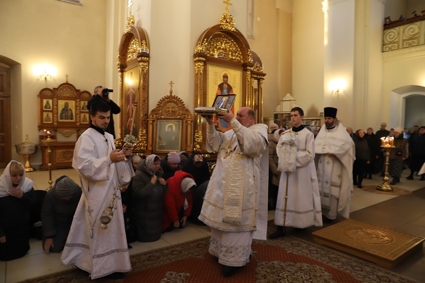 В торжественной встрече ковчега в Богоявленском кафедральном соборе Полоцка участвовали епископ Полоцкий и Глубокский Игнатий, священнослужители, прихожане.