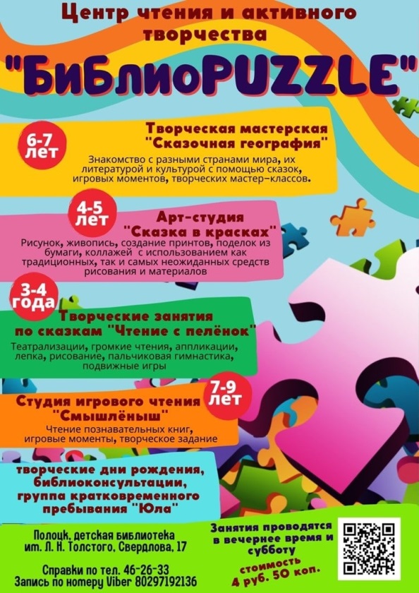 Центр чтения и активного творчества «Библиопазл» при детской библиотеке им. Л. Толстого, приглашает мальчишек и девчонок на занятия.