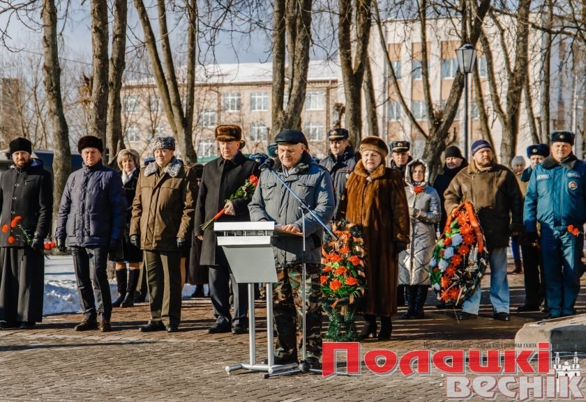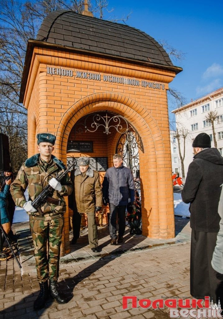 Председатель Полоцкого райисполкома Игорь Маркович, обращаясь к присутствующим, отметил: «Афганская война уже вписана в историю, но она осталась незаживающей раной для ветеранов, матерей, жен, невест павших солдат и офицеров. Наши военнослужащие достойно исполнили интернациональный долг, проявив самоотверженность и отвагу. Смелость и честь, верность воинскому долгу всегда будут примером служения стране, нашей родной Беларуси».