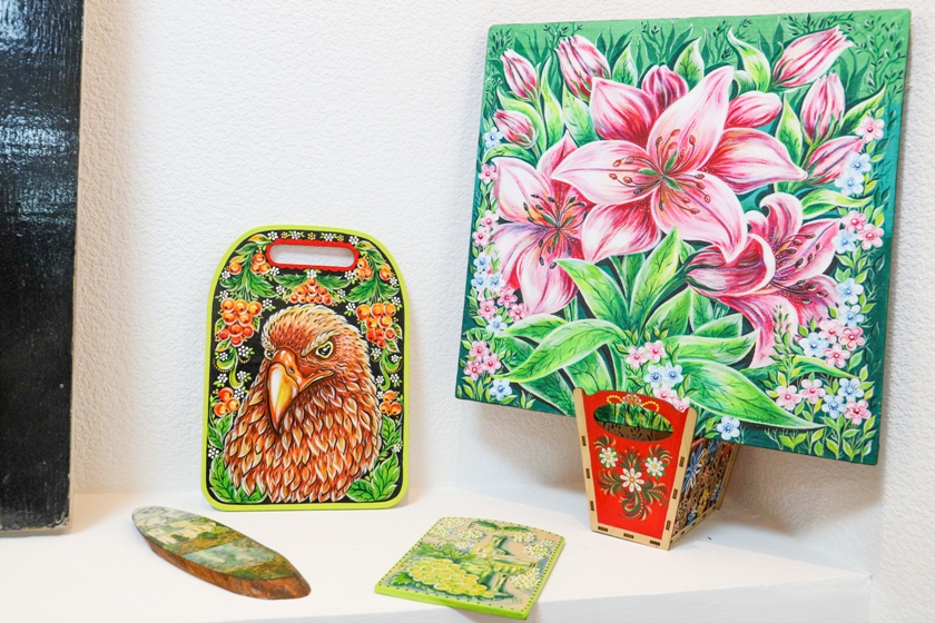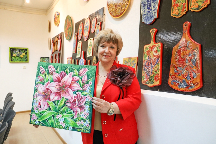 Маляванки, расписная домашняя утварь, одежда, аксессуары — кажется, нет такого вида предметов, который она не украшала бы росписью. И молд под люстру расписывала, и мебель, и стены, и даже туфли! Она владеет самой тонкой кистью, умеет выписывать каждый лепесток, каждое перышко, каждую ресничку. Уровень мастерства Татьяны Ушаковой не раз подтверждался наградами. Она приобщает полочан к народному творчеству, ведет активную выставочную деятельность, участвует в праздничных мероприятиях, фестивалях, проводит мастер-классы. «Девочки, приходите! — приглашает Татьяна Борисовна всех желающих. — Нарисуем, отреставрируем, украсим и распишем. Все у нас получится».