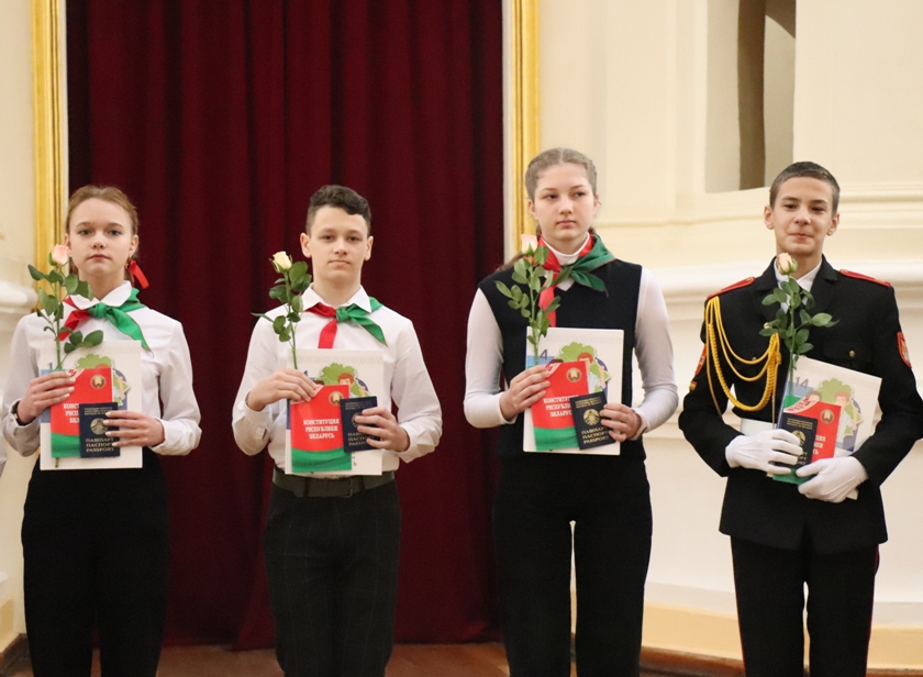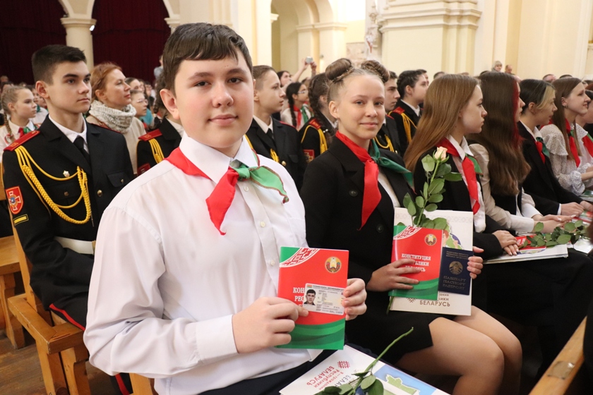 В День Конституции Республики Беларусь под сводами Софийского собора 26 представителей учащейся молодежи, имеющие особые заслуги в учебе, спорте, общественной деятельности, получили свой самый важный документ – паспорт гражданина Республики Беларусь.
