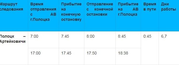 Вносятся изменения в расписание движения пригородного сезонного маршрута Полоцк – Артейковичи
