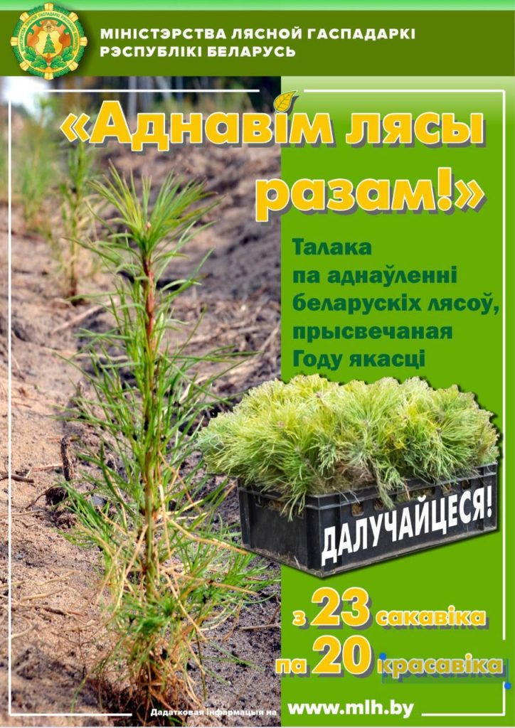 С 23 марта по 20 апреля 2024 года во всех лесохозяйственных учреждениях республики пройдет добровольная акция «Аднавім лясы разам!», которая в этот раз посвящена Году качества.