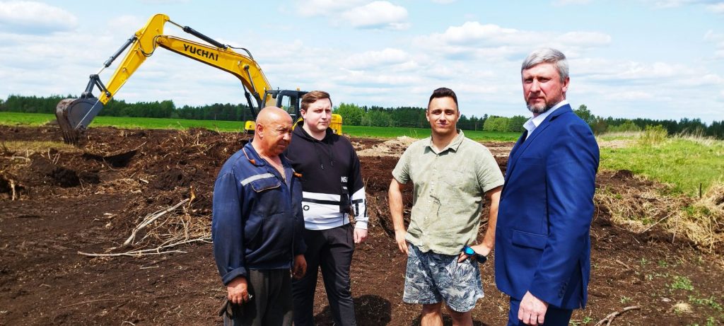 — Для выполнения мелиоративных работ недостаточно техники, требуются и кадры: машинист-бульдозерист, машинист-экскаваторщик, инженер по сметной работе. Недавно приобретен в лизинг новый гусеничный одноковшовый экскаватор YUCHAI-YC215 китайского производства. Планируем организовать его работу в две смены, поэтому ищем второго специалиста. На участке в д.Лучно, на землях сельхозпредприятия «Полимир-агро», опытный экскаваторщик Фёдор Демидёнок, который трудился на предприятии Полоцких мелиоративных систем, передает опыт молодому Богдану Копылову.