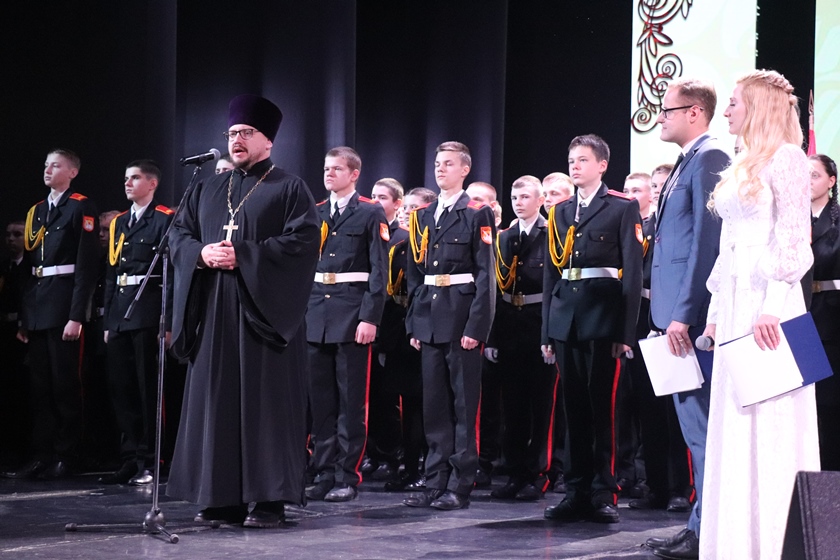 85 учащихся произнесли со сцены ЦК «Полоцк» клятву кадета, для них прозвучало множество поздравлений. А еще каждый из ребят получил подарок от Полоцкой епархии – Евангелие.