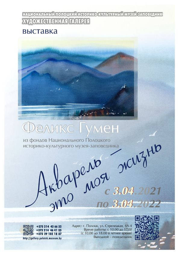 2.В художественной галерее посетите юбилейную выставку Феликса Гумена «Акварель – это моя жизнь». В фондах Национального Полоцкого историко-культурного музея-заповедника хранится 92 акварельных произведения автора, которые охватывают довольно большой период его творческого пути. Посетив выставку, вы сможете познакомиться с его поэтичными акварелями, которые обладают своим характером и энергией цвета, а также узнаете о разнообразных технических приёмах автора.