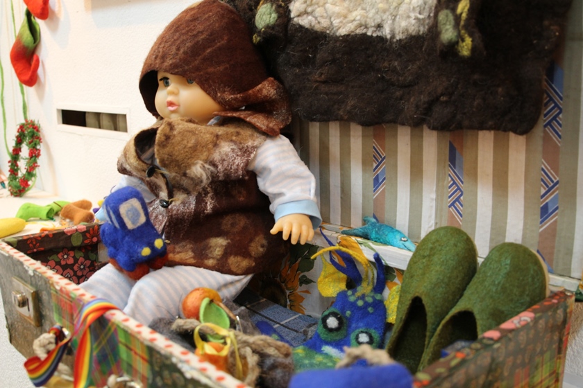 Юлия очень талантливый, креативный человек, она попробовала себя в разных техниках и стилях мастерства, но остановилась на валянии из шерсти. Мастерица занимается этим видом рукоделия уже семь лет, сегодня она демонстрирует в своих изделиях стильные сочетания и дизайнерские находки. В экспозиции – более 50 авторских изделий ручной работы, и с каждым связана своя история. Мастер почти никогда не прорисовывает эскизы, новое изделие своего рода эксперимент.