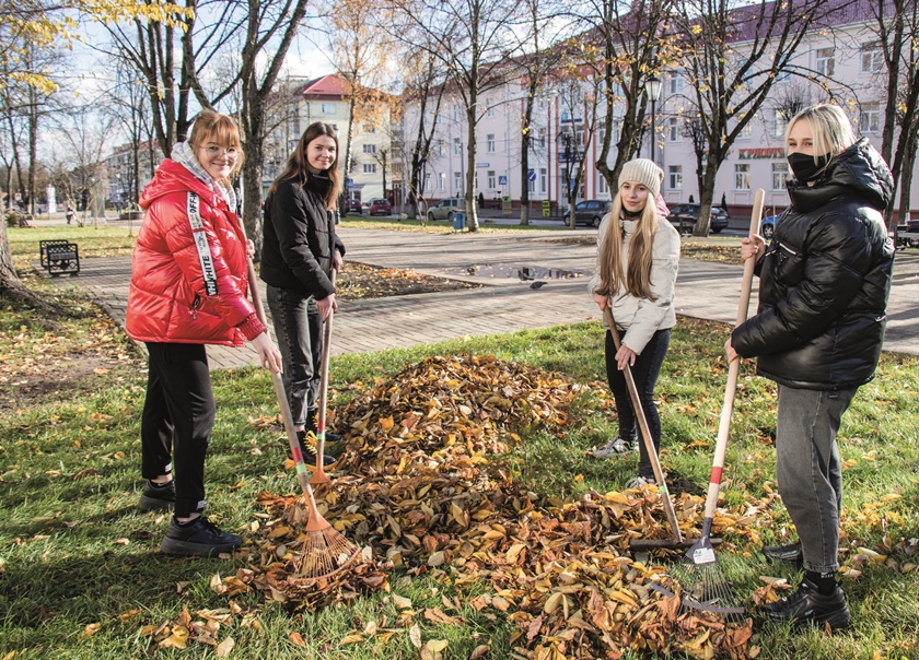 Большой объем работы выполняется силами коллектива КУП «ЖКХ г.Полоцка». Ежегодно помощь в уборке листвы работникам жилищно-коммунального хозяйства оказывает учащаяся молодежь Полоцка. И эта осень не стала исключением: юноши и девушки уже трудятся на городских территориях.