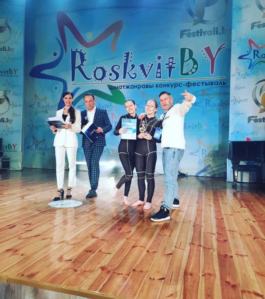 Виктория Волкова и Виктория Малашенко со своим руководителем Инной Абрамович отправились в Могилёв покорять престижный республиканский многожанровый конкурс-фестиваль Roskvit.by. Из-за сложной эпидемической ситуации коллектив представлял только гимнастический дуэт.