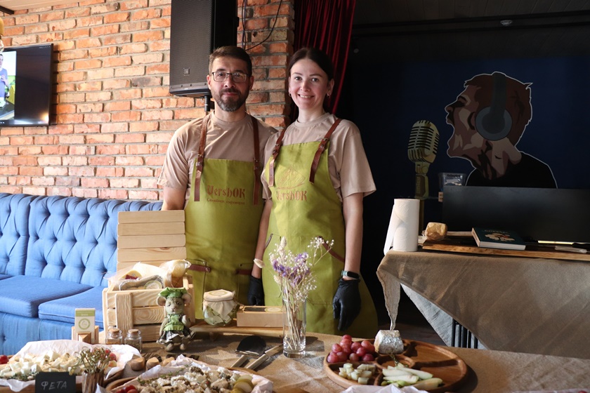 Почти два десятка сортов сыра предлагают своим клиентам семья Зелёнко. А чтобы научить полочан культуре употребления и правилам дегустации сыра, которая по-настоящему помогает раскрыть для себя этот продукт, Инна и Вальдемар организуют для жителей нашего города и гостей познавательные мероприятия в одном из кафе г.Полоцка. Супруги знакомят участников с историей сыров, рассказывают о производстве, о продуктах и напитках с которыми сочетается тот или иной сорт сыра. И, конечно, участники дегустируют продукцию семейного бренда, а также блюда, приготовленные с использованием сыров от versh_ok.by. На одном из таких необычных мероприятий Инна и Вальдемар вместе со своими гостями разрезали первую головку твердого сыра грюйер, который варили впервые. Новинка покорила присутствующих!