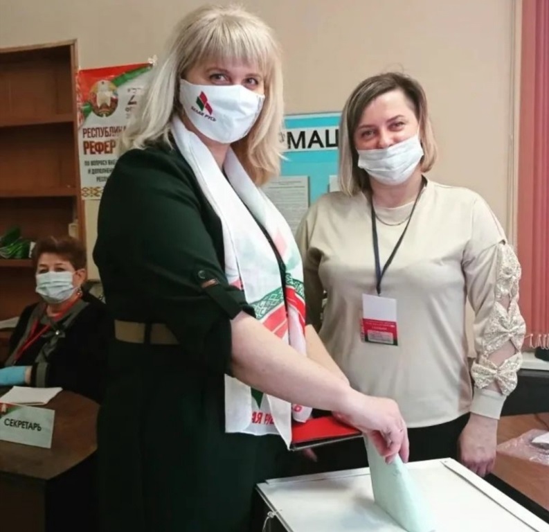 Председатель Полоцкой районной организации РОО «Белая Русь» Ирина Дёминова приняла участие в досрочном голосовании на республиканском референдуме по внесению изменений и дополнений в Конституцию Республики Беларуси.
