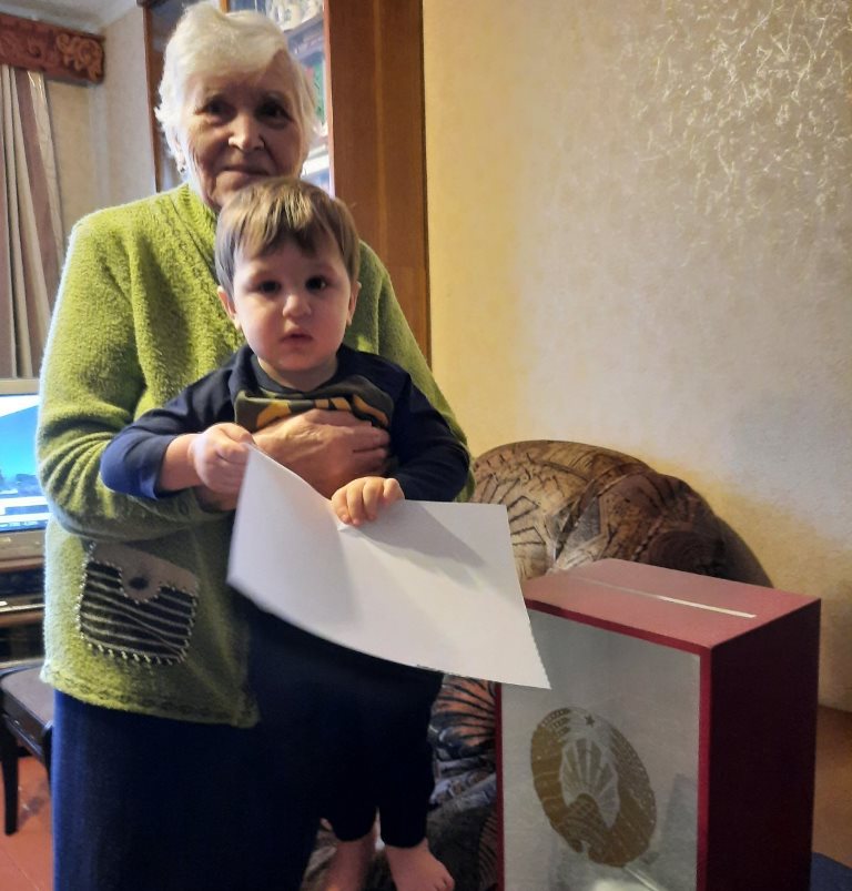 В этот день к ней в гости приехал с мамой правнук Матвей, которому всего 1,5 года. Он и помог прабабушке опустить в урну для голосования ее бюллетень, ведь формирование патриотизма и гражданственности начинается с самого детства.