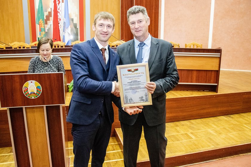 Первый заместитель председателя Полоцкого райисполкома Сергей Лейченко поздравил с праздником коллектив КУП «ЖКХ г.Полоцка», отметив, что от работы коммунальщиков напрямую зависят сервисное обслуживание жилья, благоустройство территорий, чистота и порядок на улицах и во дворах. За всем этим – ежедневный кропотливый труд, благодаря которому обеспечивается достойное качество жизненной среды в Полоцке и Полоцком районе. Он также вручил заслуженные награды представителям предприятия.
