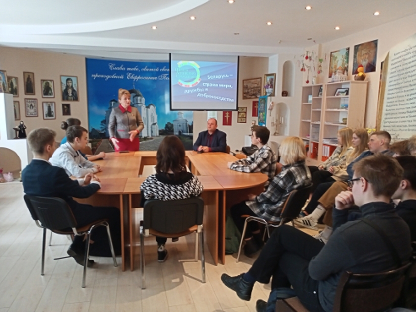Депутат Палаты представителей Национального собрания Республики Беларусь Светлана Одинцова приняла участие в информационно-образовательном проекте «Школа активного гражданина» по теме «Беларусь — страна мира, дружбы и добрососедства» в СШ № 18 им.Евфросинии Полоцкой.