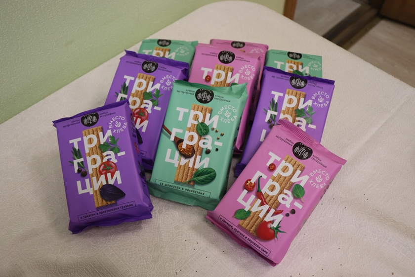 В числе новинок предприятия три вида хлебцев экструзионных пряных, которые выпускаются под новым брендом «Три грации». Это три ярких вкуса, которых удалось добиться благодаря использованию натуральных продуктов, специй и пряных трав: «Хлебцы со шпинатом и пряностями», «Хлебцы с томатом, орегано и перчиком чили» и «Хлебцы с томатом и прованскими травами».