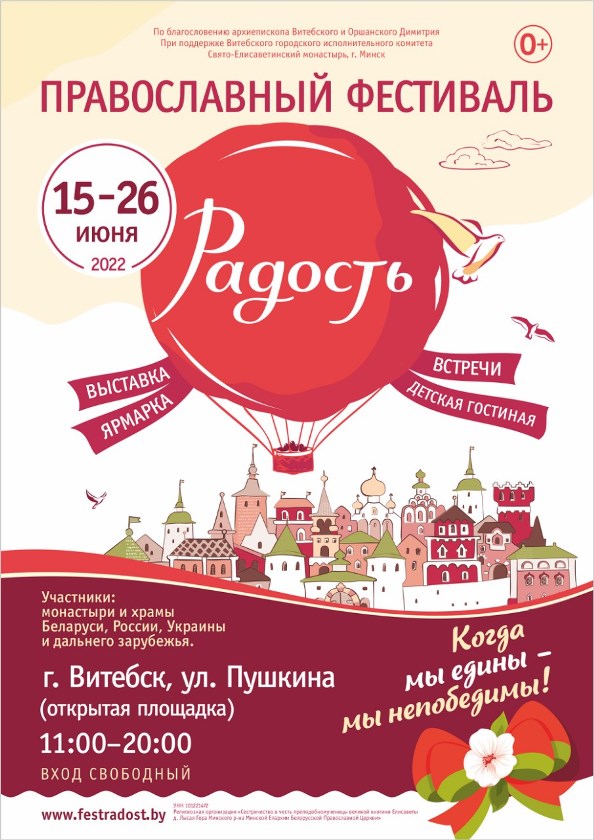 С 15 по 20 июня 2022 года по улице Пушкина в Витебске (открытая площадка пройдет православный фестиваль «Радость».