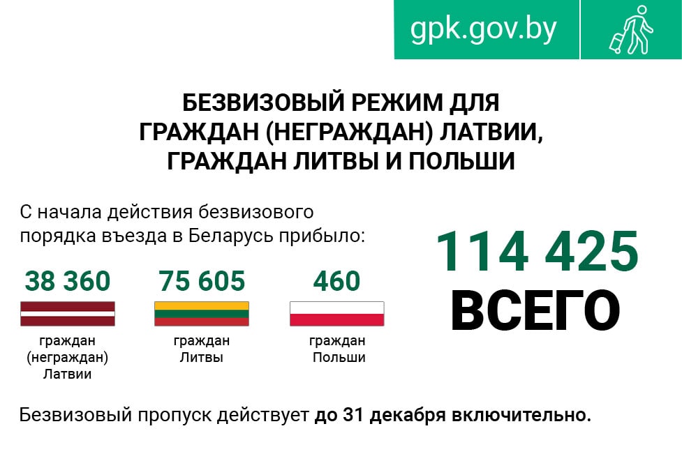 С 15 апреля возможностью безвизового въезда в Беларусь воспользовались 75 605 граждан Литвы, 9 336 неграждан и 29 024 гражданина Латвии.