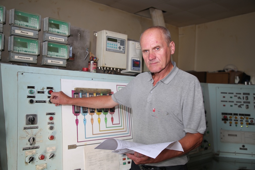 Шло время, накапливался опыт, росло мастерство, и следующей ступенькой в трудовой биографии В.В.Шарстука была работа в должности помощника мастера. Тут уже он сам делился знаниями с молодым поколением. Заработав пенсию, Виктор Владимирович перешел трудиться составщиком шихты. Наш герой объясняет: