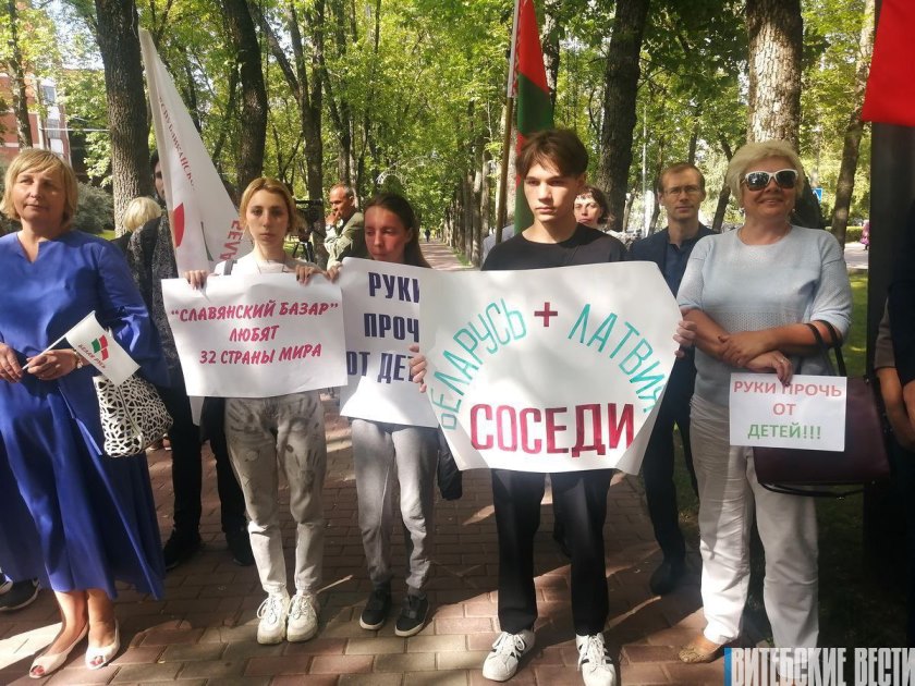 В Витебске у консульства Латвии прошёл митинг в поддержку воспитанников Рижской детской академии радио и телевидения Academy KidsTV, которые взяли интервью у Президента Беларуси Александра Лукашенко во время фестиваля «Славянский базар». В акции у здания латвийской дипмиссии приняли участие представители нескольких общественных объединений, общественность города.