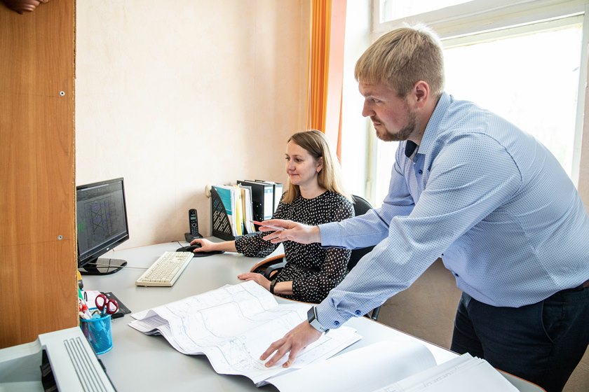 Не могу не сказать несколько слов о наших сотрудниках. Начальник одного из отделов Людмила Владимировна Сафонова работает в «Полоцком Техпроекте» 30 лет. Практически со дня основания предприятия трудится и Виктор Сергеевич Хацкевич. Долгое время он был начальником конструкторского отдела и сейчас продолжает работать в отделе как наставник.