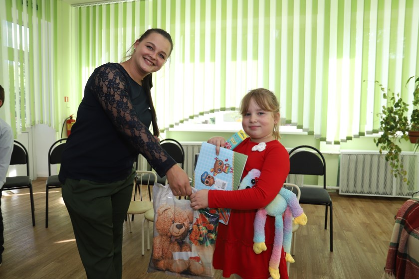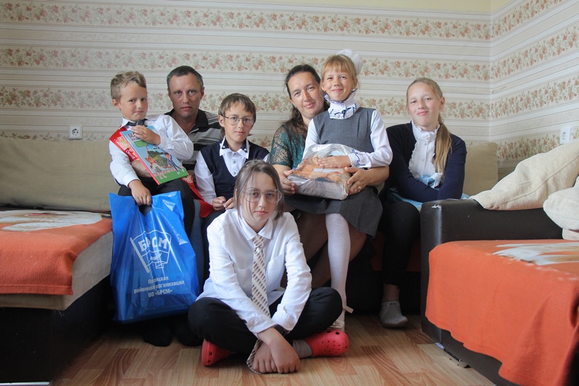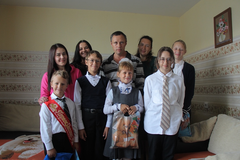 Приятный сюрприз организован и для семьи Петрушенко. Светлана и Андрей воспитывают семерых детей, пятеро из которых — школьники. Самый младший Павел в этом году пошел в первый класс. Звучали поздравления с началом нового учебного года, пожелания быть надеждой и опорой нашей страны.