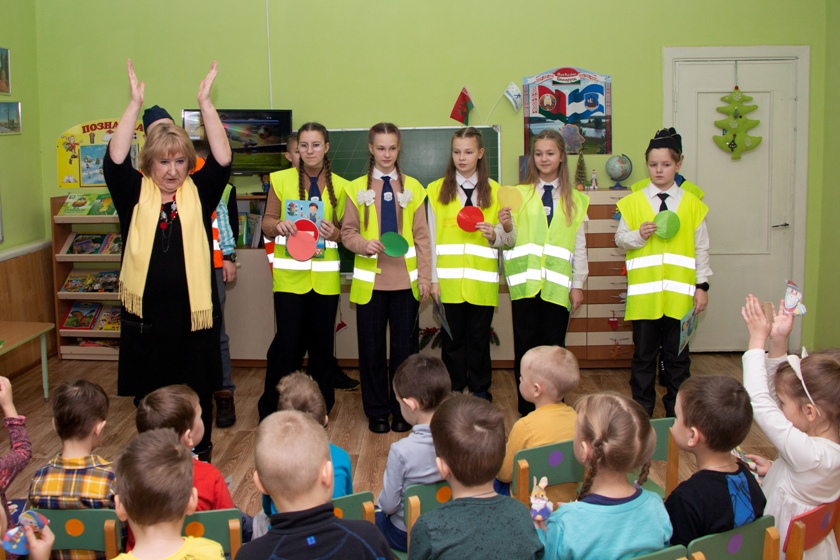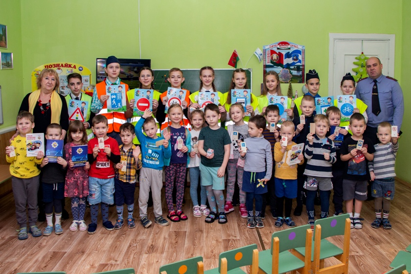 Сотрудники отдела ГАИ Полоцкого РОВД совместно с отрядом ЮИД Полоцкой государственной гимназии №2 (руководитель Раиса Шутова) провели профилактическое занятие для воспитанников ДС №7 г. Полоцка.