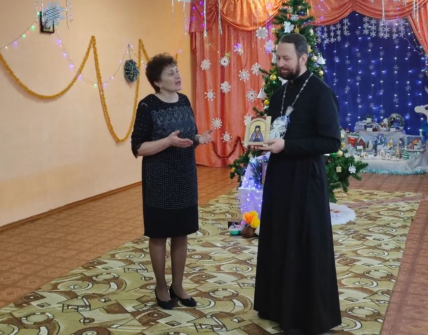 Отец Владимир поздравил детей с январскими праздниками, рассказал о празднике Рождества Христова, о том, почему эти дни называются святочными, а также поведал о празднике Крещения Господня, окропил руководство учреждения, сотрудников и ребят святой водой, вручил воспитанникам детского сада сладкие подарки и пожелал всем Божией помощи и плодотворной работы.