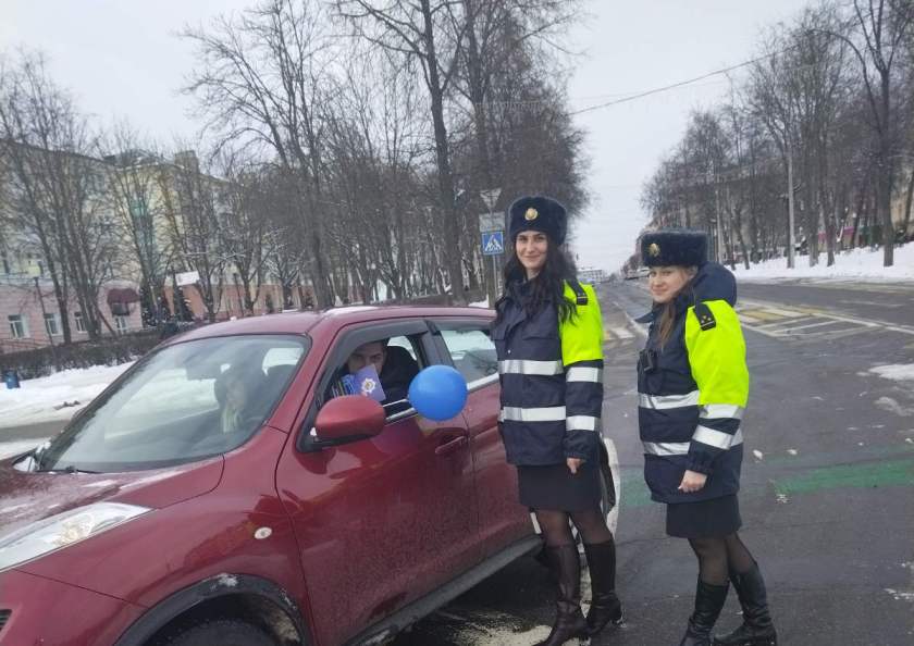 Сотрудницы Госавтоинспекции Полотчины поздравили мужчин-водителей