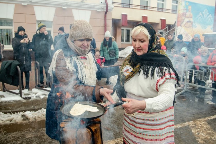 Уже с самого утра на площадь съезжались торговцы со своей продукцией, чтобы гости гулянья не оставались голодными, а подкреплялись бы разносолами. А главное угощение, конечно, блины.