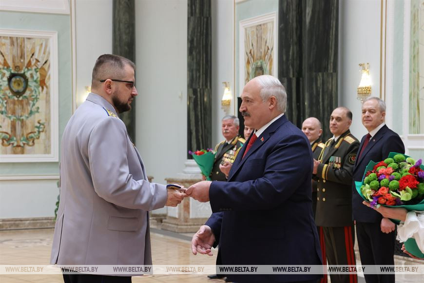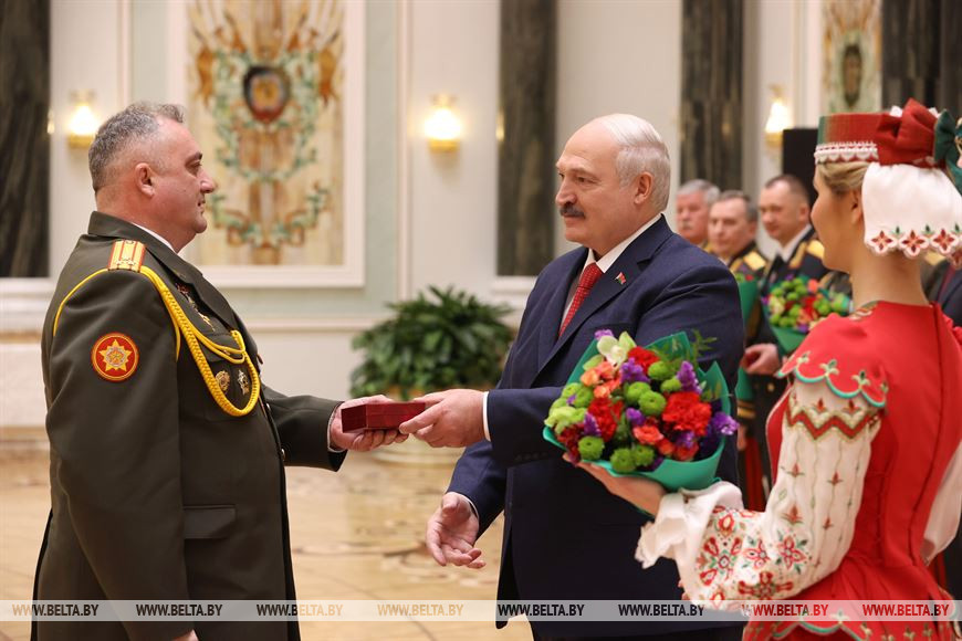 Награды и новые погоны, которые в торжественной обстановке получили участники церемонии, являются, по словам Президента, признанием больших личных заслуг перед Отечеством, подтверждением уровня профессиональной выучки и знаком высокого доверия белорусского народа.