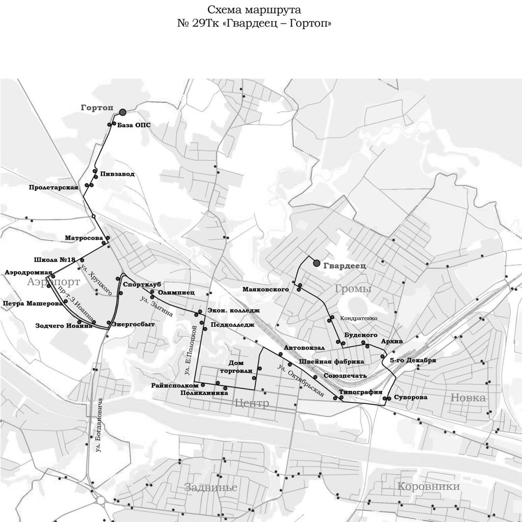 Строительство новых районов увеличивает плотность жителей, а значит, потребность в более широком охвате потенциальных пассажиров возрастает. В этой связи комиссией по регулированию деятельности пассажирского автомобильного транспорта при Полоцком райисполкоме рассмотрен вопрос об изменении схемы движения маршрута №29ТК Гвардеец–Автовокзал–Гортоп с учетом застройки шестого микрорайона Аэропорт (ул.Петра Машерова, проспекта Мира и проспекта Зодчего Иоанна).