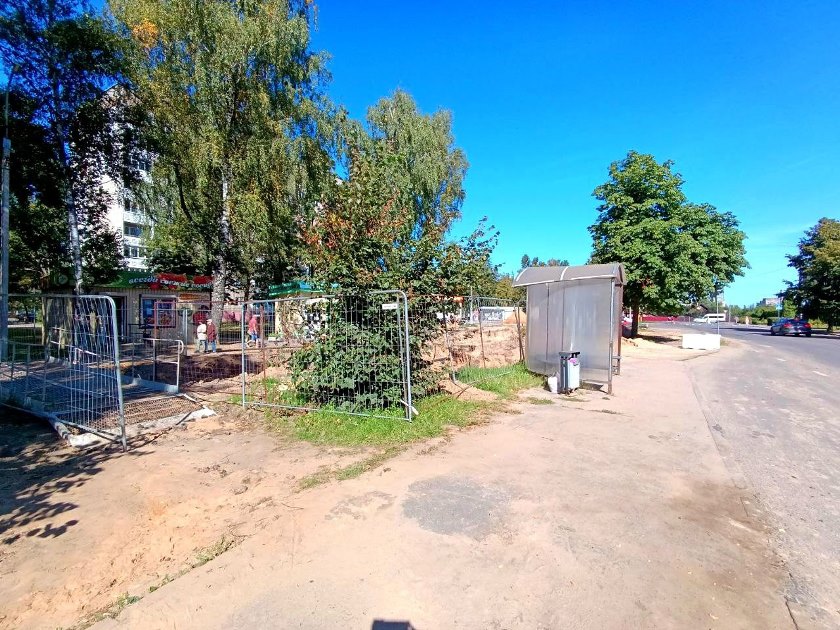 Место производства работ имеет сплошное инвентарное металлическое ограждение, и остановочный пункт «Петруся Бровки» находится за пределами границ производства работ.