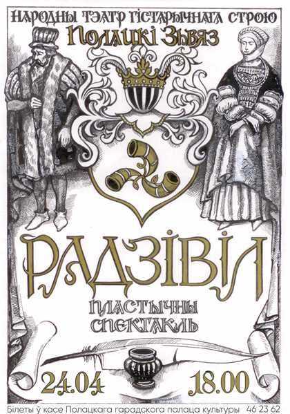| Спектакль пластического танца «Радзівіл» в постановке народного театра исторического костюма «Полоцкий звяз» | 24.04 | 18.00 | 7 руб. |