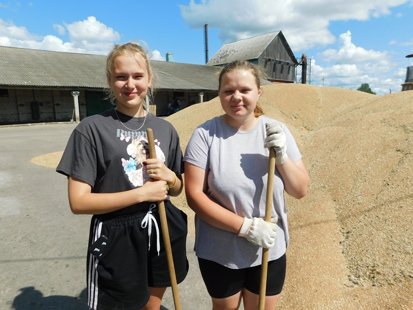 Пазнаёміліся мы і з дзяўчатамі, якія прымалі зерне на зернесушылцы. Дане Карповіч 18 гадоў, дзяўчына — студэнтка Віцебскага дзяржуніверсітэта імя П.М.Машэрава. Будучы настаўнік беларускай мовы і літаратуры не цураецца сялянскай працы, старанна падмятае зерне. Дзяўчына вырашыла на канікулах зарабіць грошай. Лізе Карчэўскай 16 год, яе працоўны дзень доўжыцца 7 гадзін. У вёсцы Лучна жыве бабуля, а сама дзяўчына з Полацка. Працаваць на зернесушылку пайшла па сваім жаданні з упэўненасцю, што набыты вопыт не будзе лішнім у будучай прафесіі. Ліза вучыцца на агранома ў аграрным каледжы ў пасёлку Лужасна.