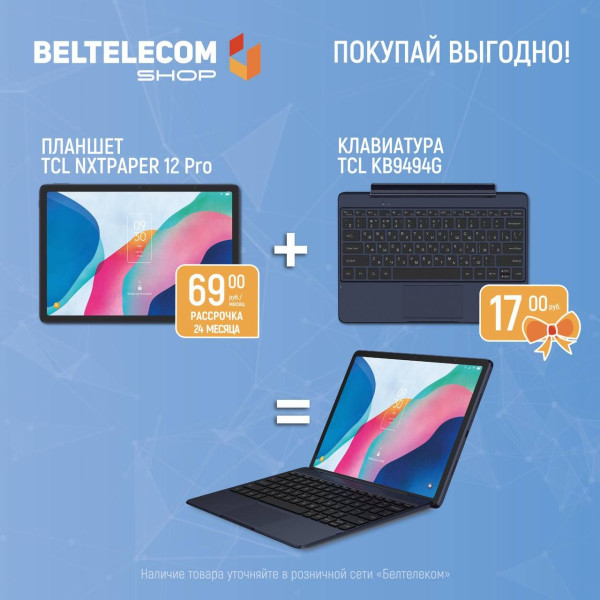+ БОНУС: при покупке планшета TCL NXTPAPER 12Pro 9494G, клавиатура TCL 9494G всего за 17 рублей – идеальное дополнение для продуктивной работы и развлечений