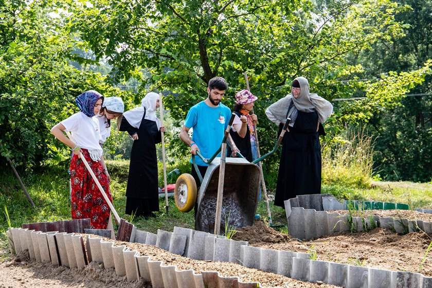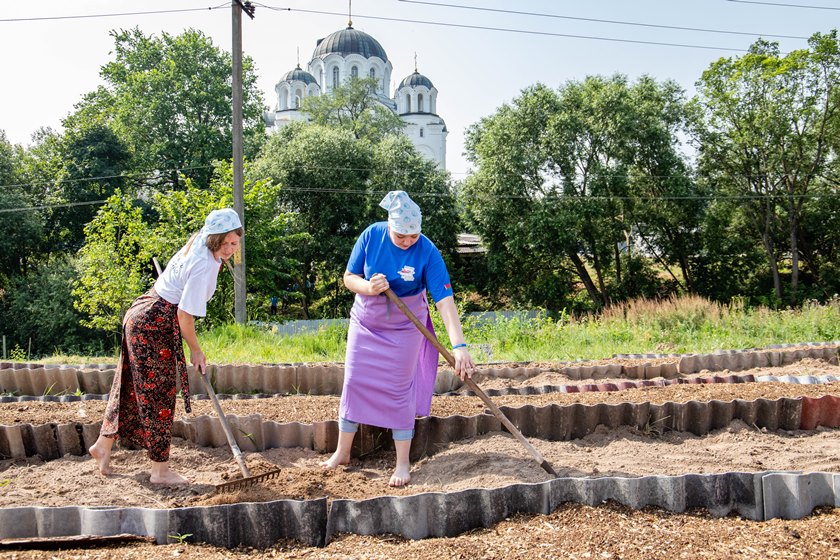 В Полоцке они приняли участие в благотворительной акции «Восстановление святынь Беларуси». На протяжении нескольких часов ребята проводили работы по благоустройству территории Спасо-Евфросиниевского cтавропигиального женского монастыря.