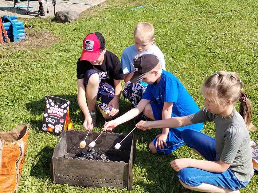 Весело и с пользой все дружно провели время во дворе. В начале покосили траву, а затем жарили зефир, запускали самолеты, играли в волейбол. Двор Дома семейного типа наполнился смехом и радостными возгласами. Аромат жареного зефира смешался с запахом свежескошенной травы, создавая неповторимую атмосферу летнего дня. Запуск самолетиков вызвал бурю восторга, а волейбольный матч стал настоящим спортивным соревнованием, в котором победила дружба.