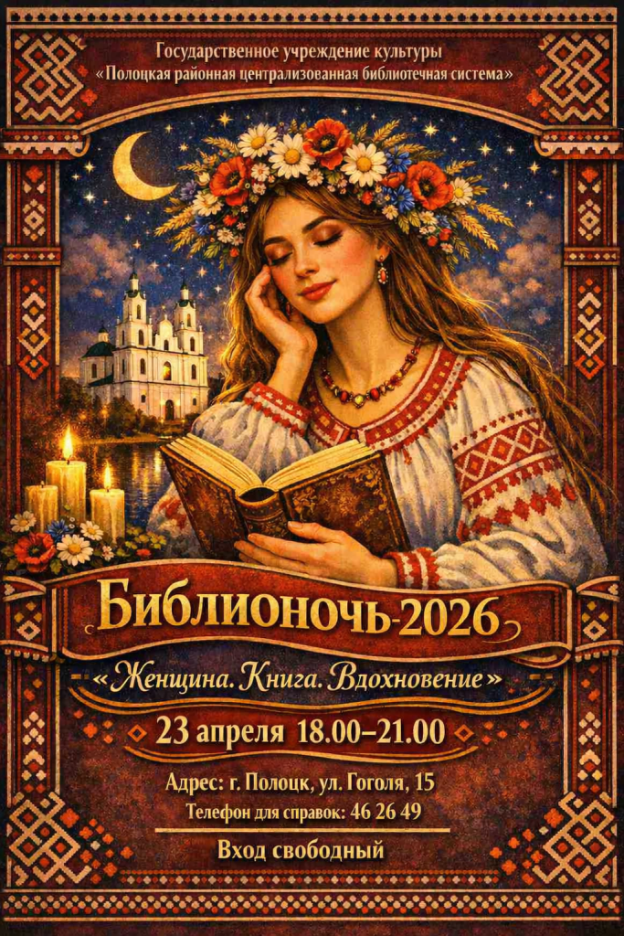 Центральная районная библиотека имени Франциска Скорины приглашает всех желающих на культурно-просветительскую акцию «Библионочь-2026», которая состоится 23 апреля.