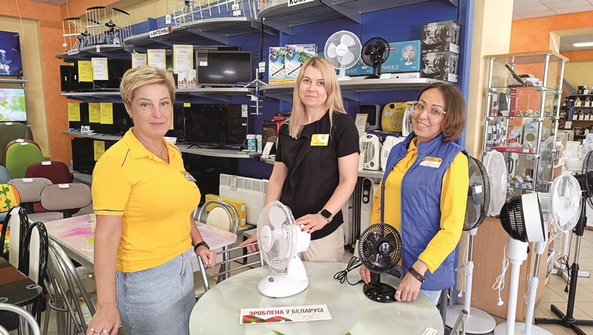 Добро пожаловать сюда за бытовой техникой, мебелью и эстетикой! Если кто еще не в курсе: пару лет назад «Горизонт» переехал с проспекта Франциска Скорины на одноименную улицу, поменявшись местом с мебельным магазином. Рокировка себя оправдала, торговля бытовой техникой, кухнями пошла бойче. На фото: продавец Светлана Пухненкова, заведующий магазином Ирина Боровикова и продавец Оксана Исакова.